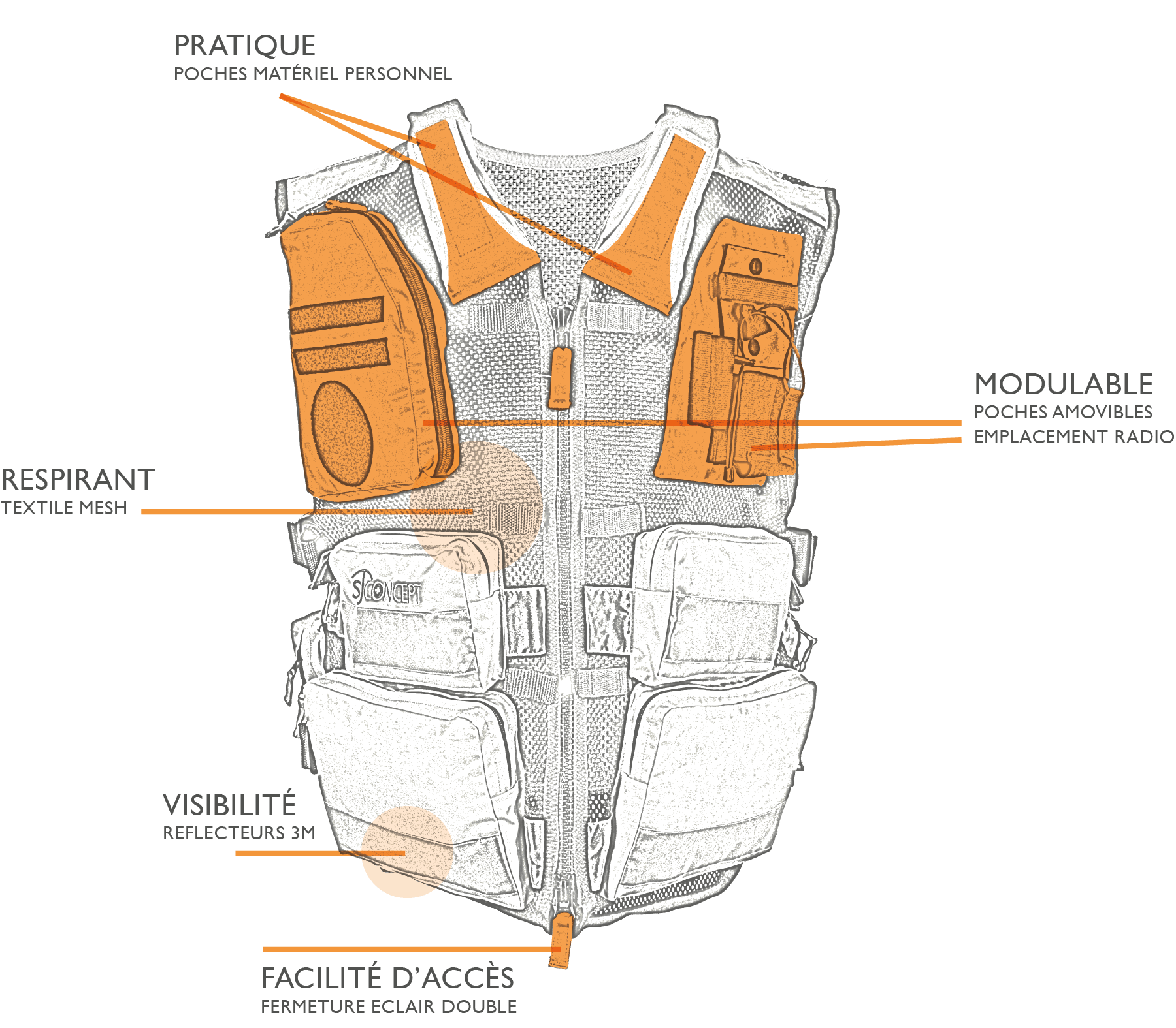 Gilet ultra-léger haute visibilité, bandes réfléchissantes 3M, aéré, respirant, souple, réglable, résistant à l'usure. Les ambulanciers - pompiers - secouristes - industriels ont été satisfaits par cet équipement. Disponible en 3 tailles: S/M - M/L - L/XL et 2 coloris: jaune - orange. Possibilité de marquage réfléchissant dorsal et frontal. Nous consulter pour toute commande spécifique.